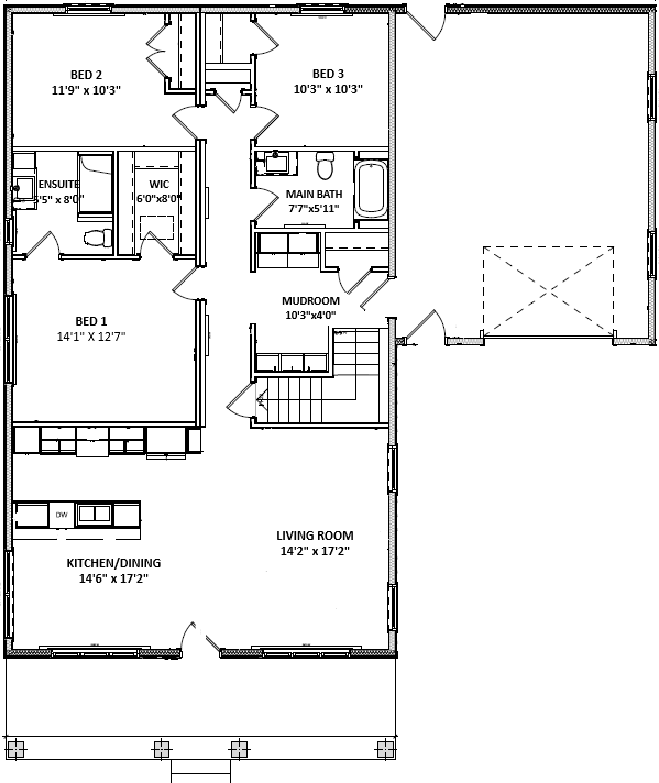 30’ x 52’ Ranch - 1470 sf / 3 bedrooms / 2 bath