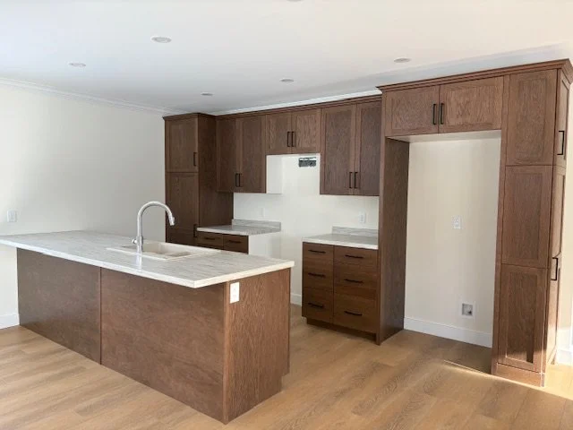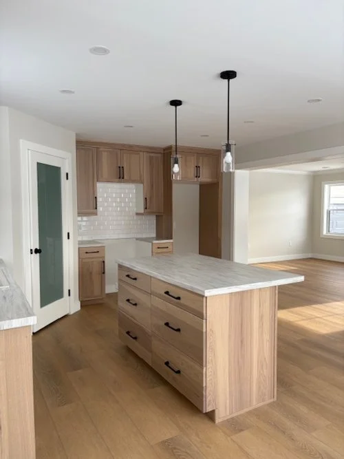 Open-concept kitchen with corner pantry